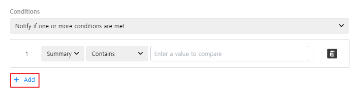 | Conditions | Choose notification conditions as follows. • Notify if one or more conditions are met • Notify if all conditions are met |