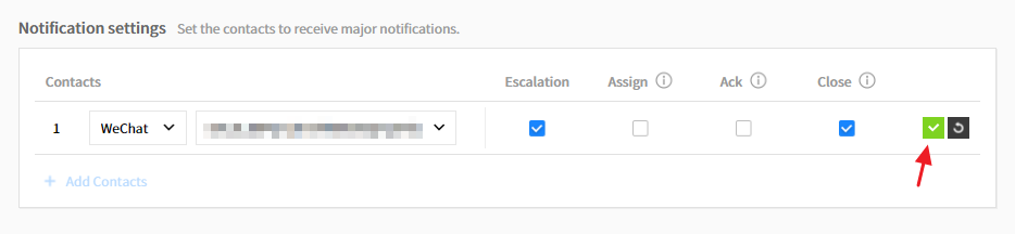 ① Choose the [WeChat], and select checkboxes to receive notifications and click the check button.