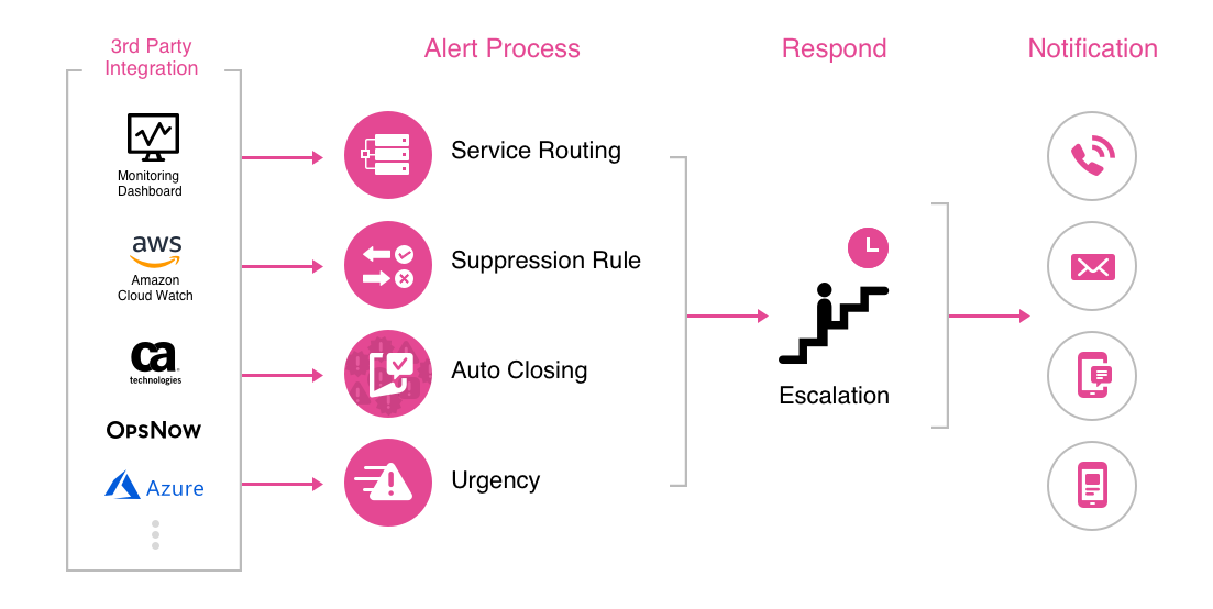 - Receive alert information occurred in multiple 3rd party monitoring tools.