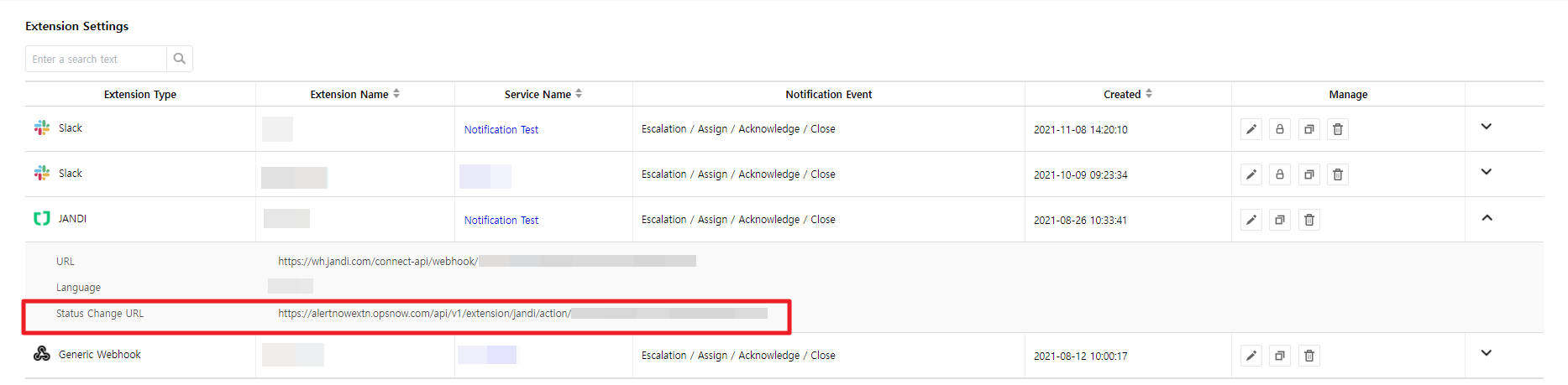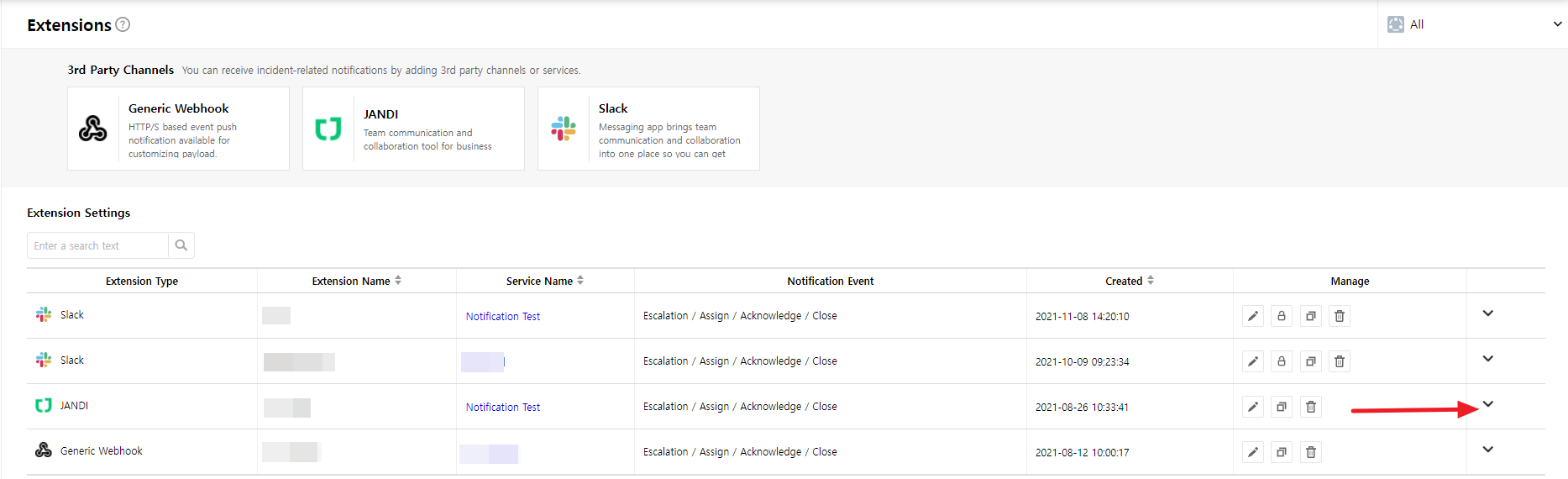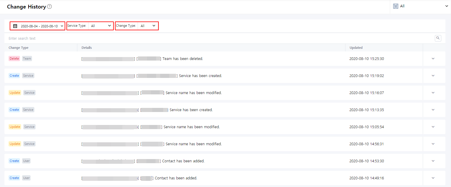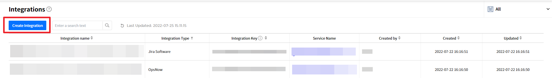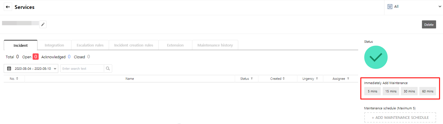 - Service: It is a unit to manage incidents occurred from integrations, and can be services or applications that users actually use and can be used freely for user’s convenience.