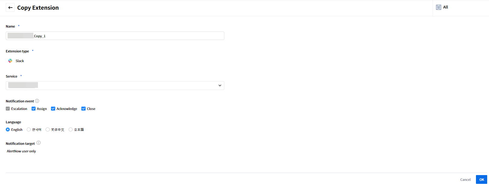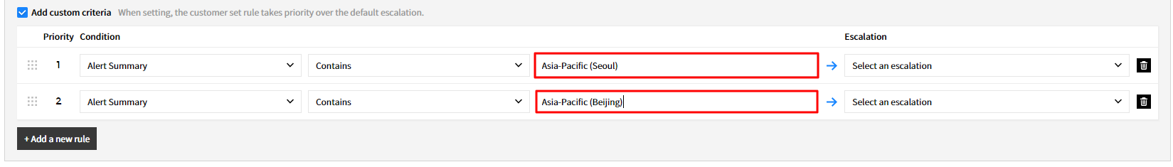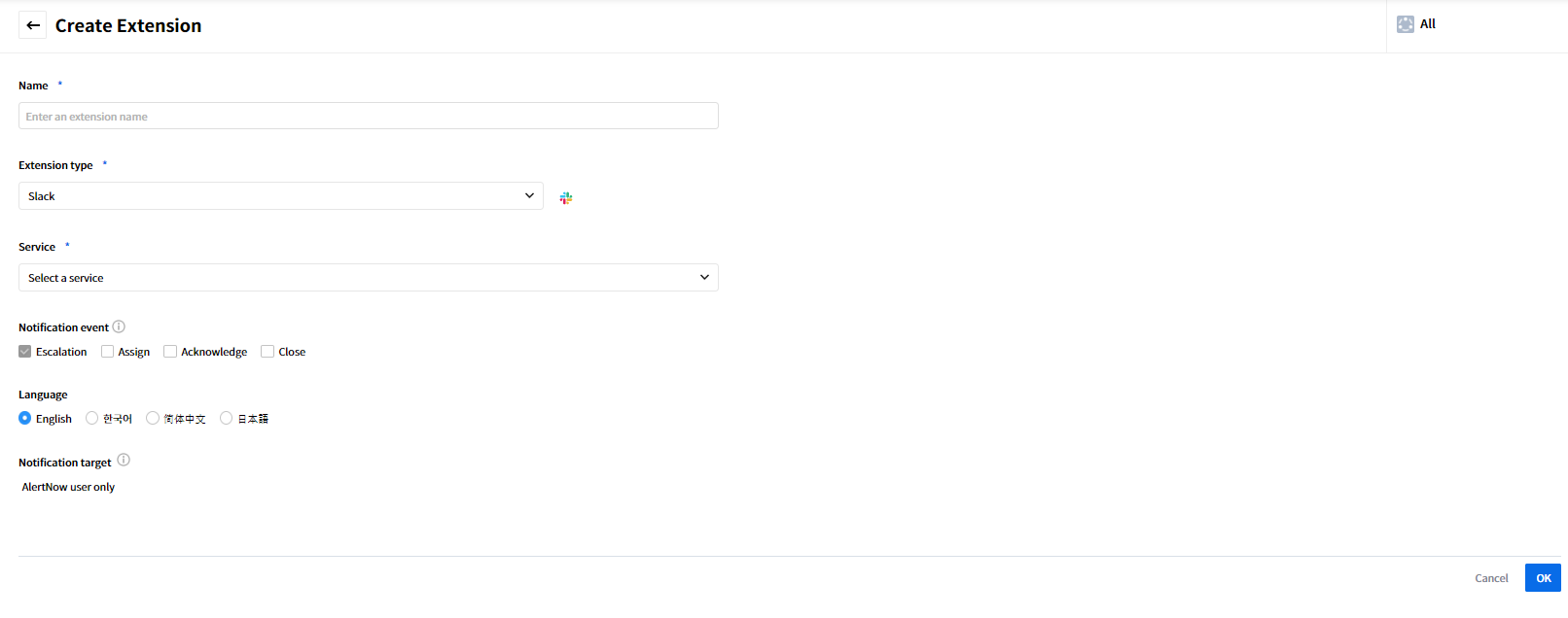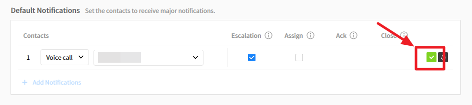 | Apply to | Choose notification channels as follows. • Escalation • Assign • Ack • Close |