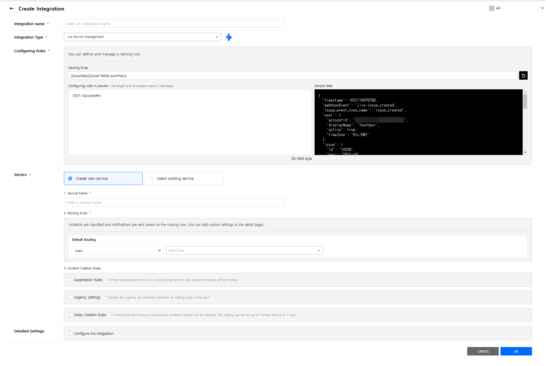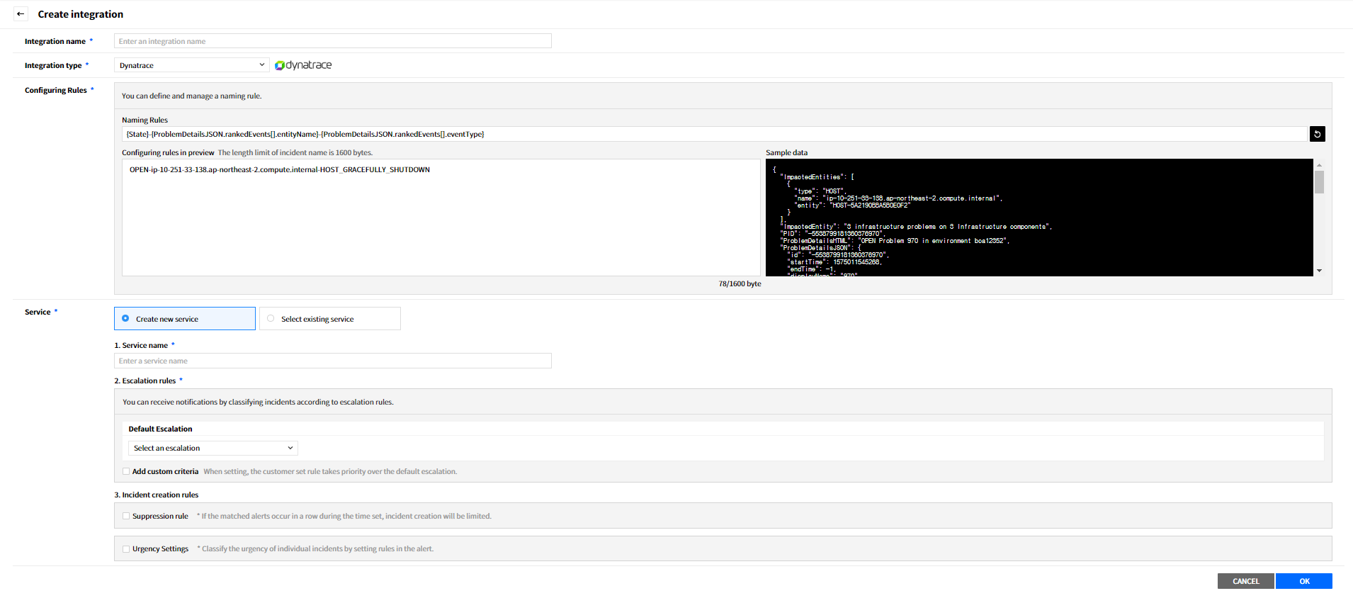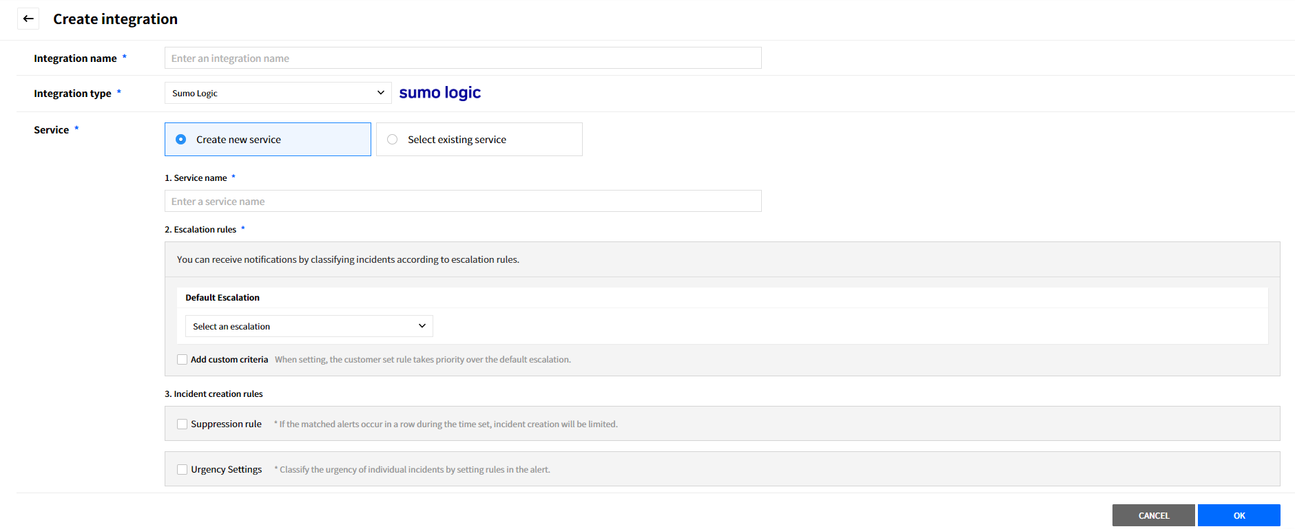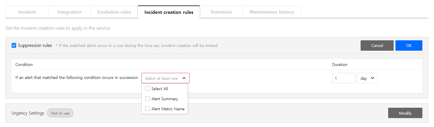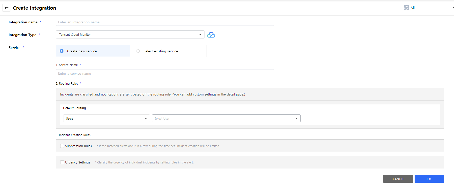 Create a service to manage incidents that are created in the integration. Service is a unit for managing incidents and provides related information that easily allows users to view and access incidents, integrations, escalation rules, extension, maintenance history they need to manage incidents. So you can create and use a service to reflect your needs.