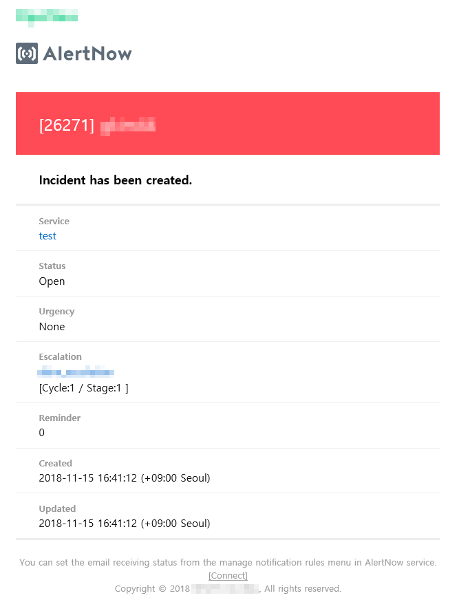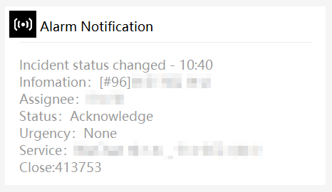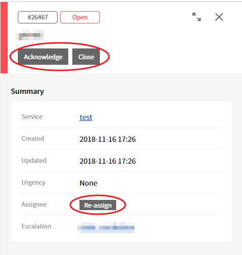 ⑥ If an incident assignee is changed, you will receive assignee change as below, and changed assignee will be displayed in “Assignee”.
