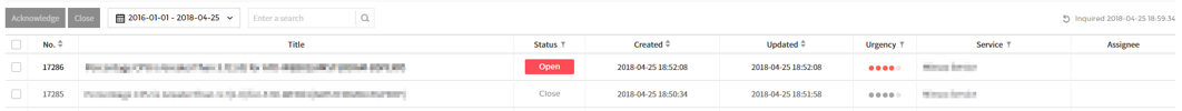 - Incident: When collecting alerts, it manages the status of the ticket created by incident policy.