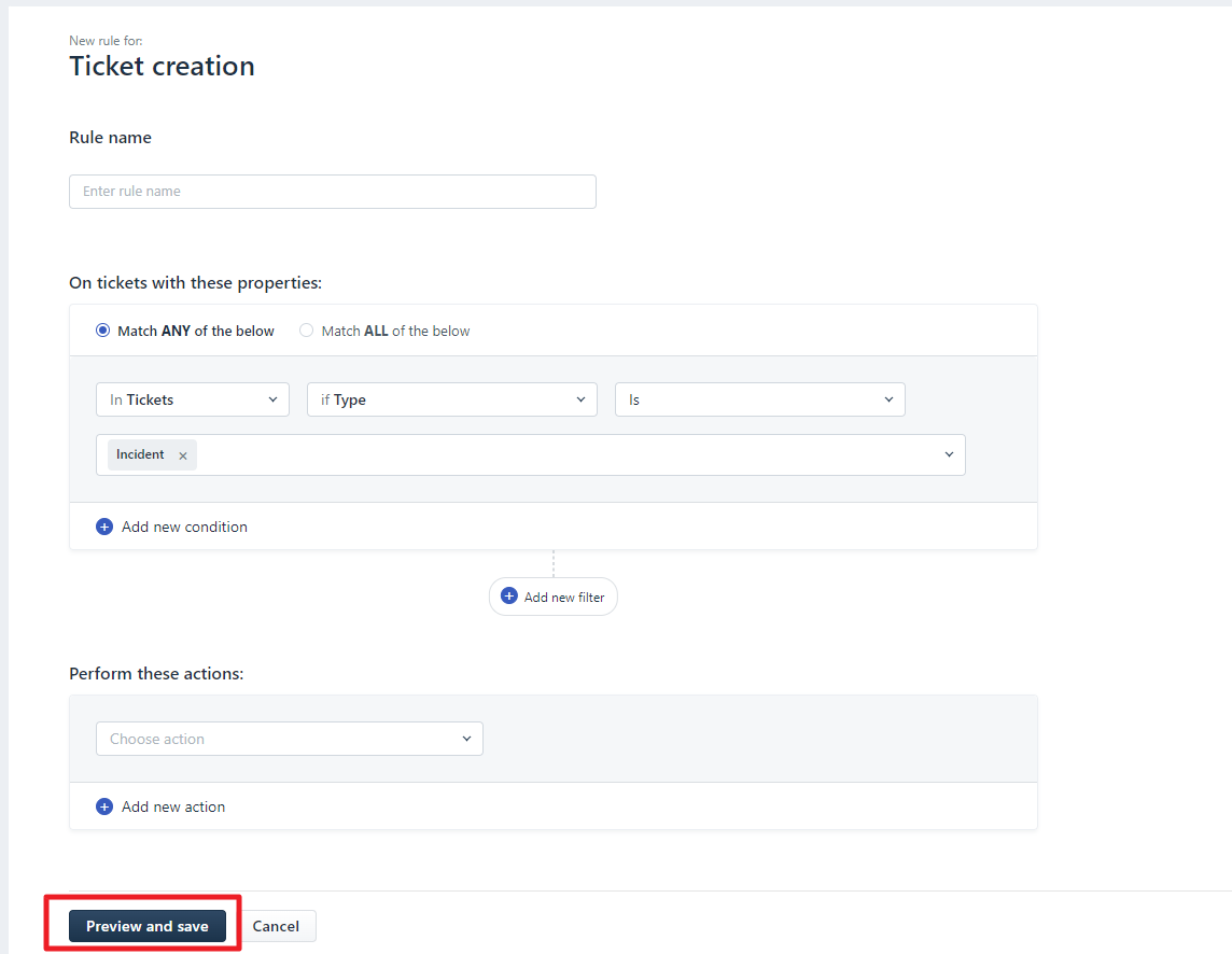 | Conditions details - 2 | Choose Urgency for the level of incidents and set it as Highest, High, Medium, Low or Lowest. |