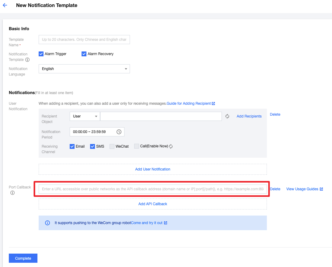 Users can configure notification rules to receive notifications based on user-defined rules.