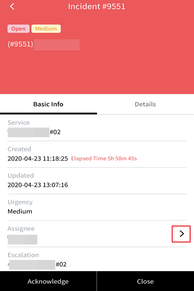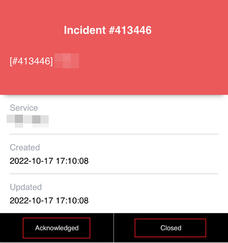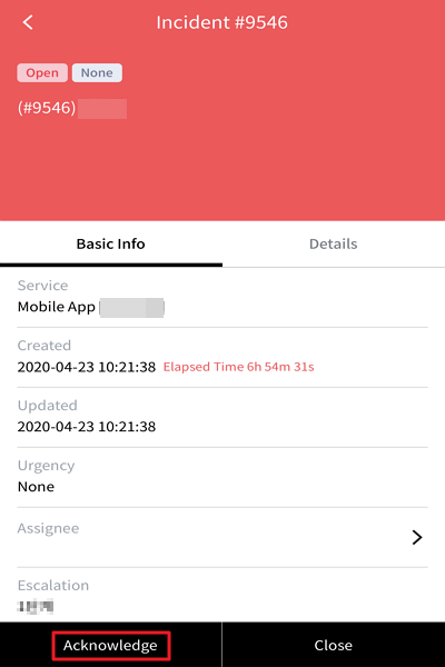② You can acknowledge an incident by tapping the incident and tapping the [Acknowledge] button on the incident details page.