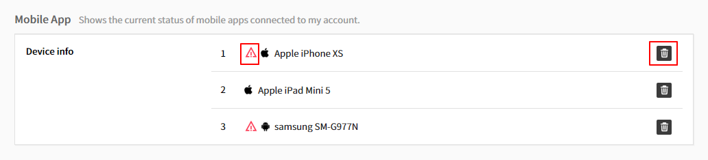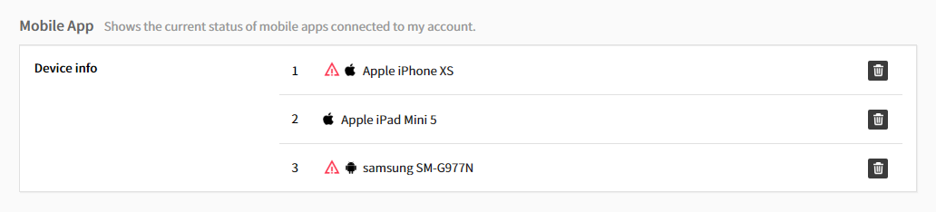 ① You can view the current status of mobile apps connected to your account.