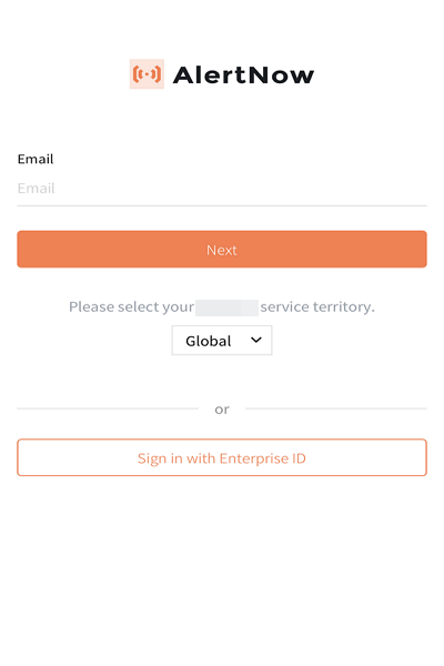 ① When you open the AlertNow app for the first time, you will be prompted to enter your email address to login.