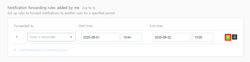② Select a responder to forward notifications, and specify the start time and end time.