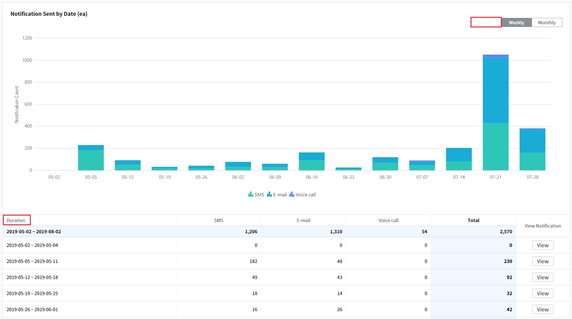 ② Select one from Daily or Weekly option. Specify hours of the day or the duration of the week and click the [Add] button. If you choose Daily and set the time to 09:00~12:00, you will not receive any notifications during the specified hours everyday. For Weekly, if you set a date to Monday and time to 09:00~12:00, you will not receive any notifications during those hours every Monday.