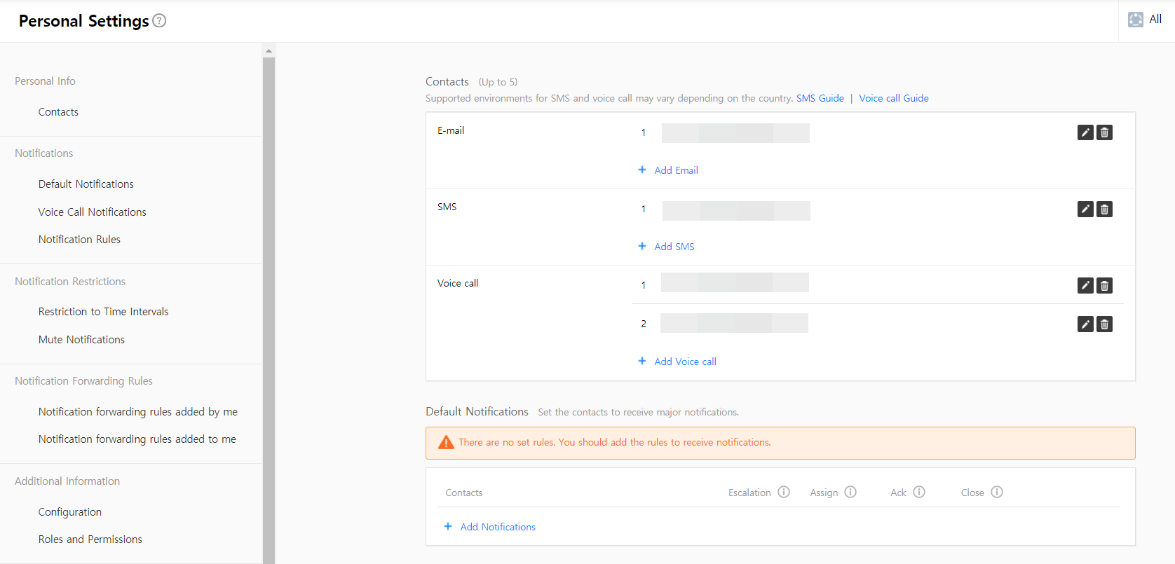 Set up your basic information and notification rules. Contact information, notification rules, user settings and additional information can be configured in Personal Settings.