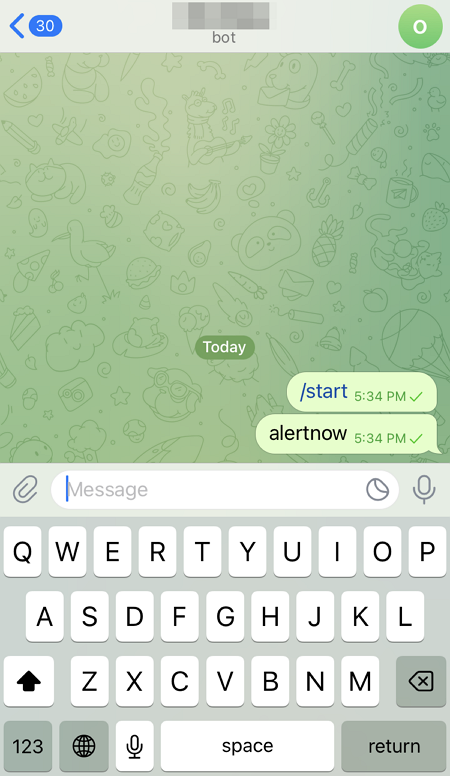 ⑤ To connect the bot with AlertNow, go to the bot channel and enter alertnow in the chatroom.