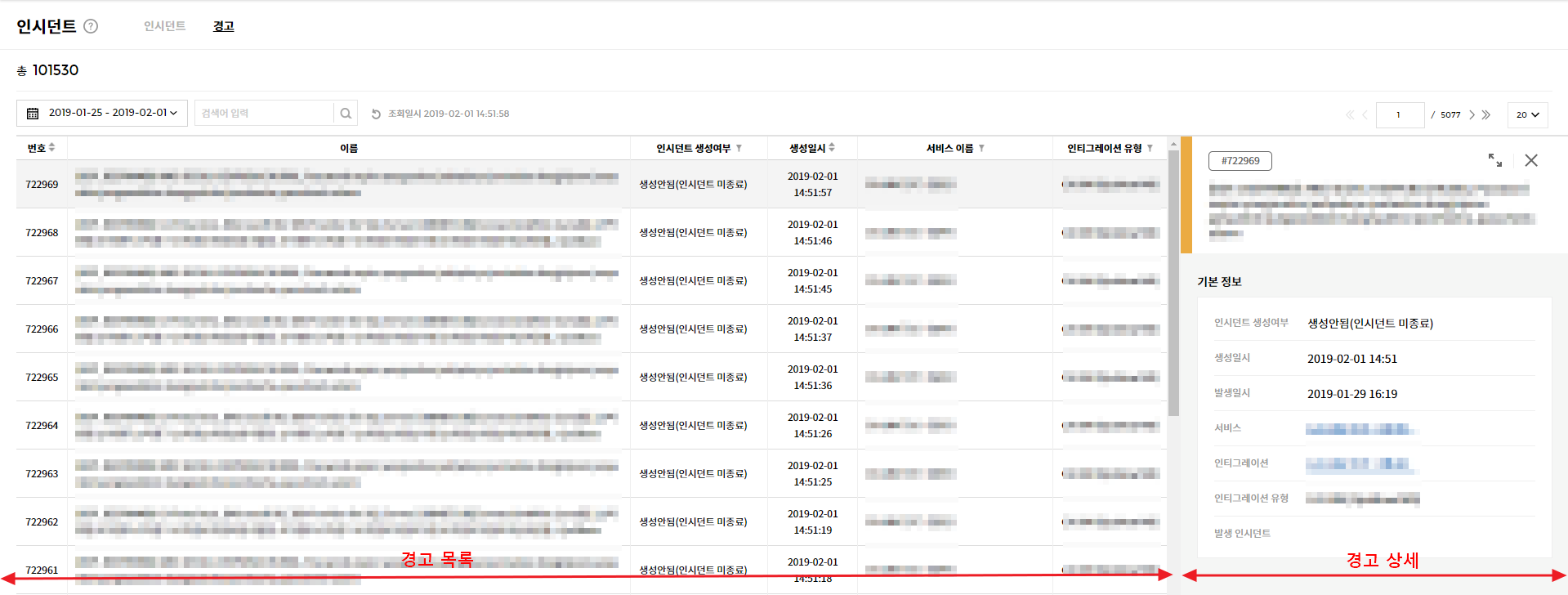 ① 생성 탭에서 원하는 인시던트를 선택하면 인시던트 상세 페이지로 이동합니다.