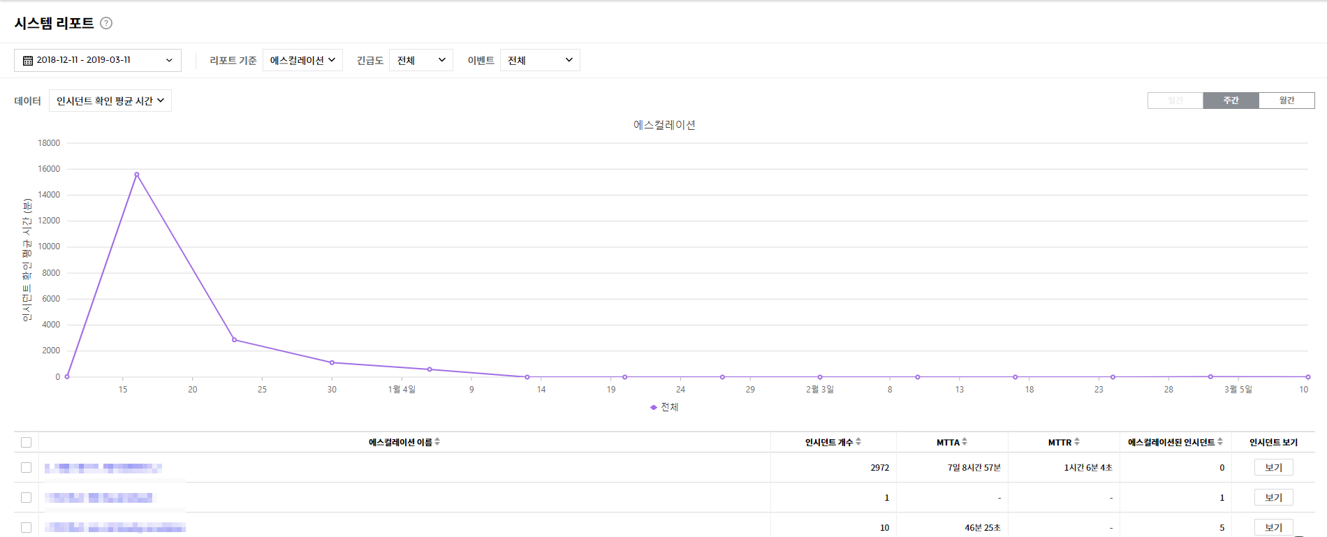 - 인시던트가 확인 또는 종료되지 않을 경우 다음 단계의 담당자에게 자동으로 에스컬레이션되어 장애 초기 대응 시간(MTTD) 및 장애 복구 시간(MTTR)을 단축해 줍니다.