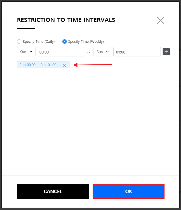 ② 选择每周或者每日指定时间后点击[添加]按钮。例如,选择每日后选择了09:0012:00,那么每天的这个时间段您将不会收到通知。如果您选择了每周,然后选择了周一的09:0012:00,那么每周一的09:00到12:00您将不会收到通知。