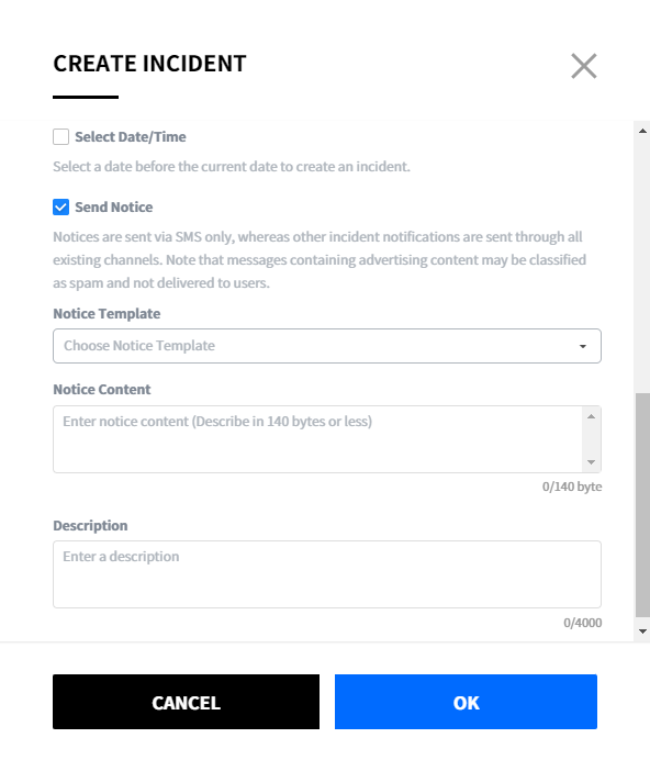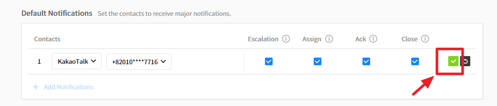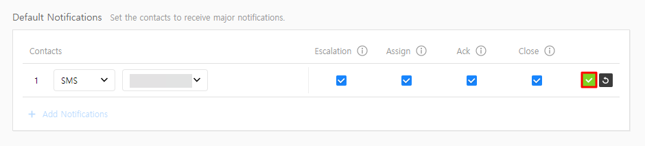 ② Select [Escalation] checkbox to receive SMS notifications when an incident is created.