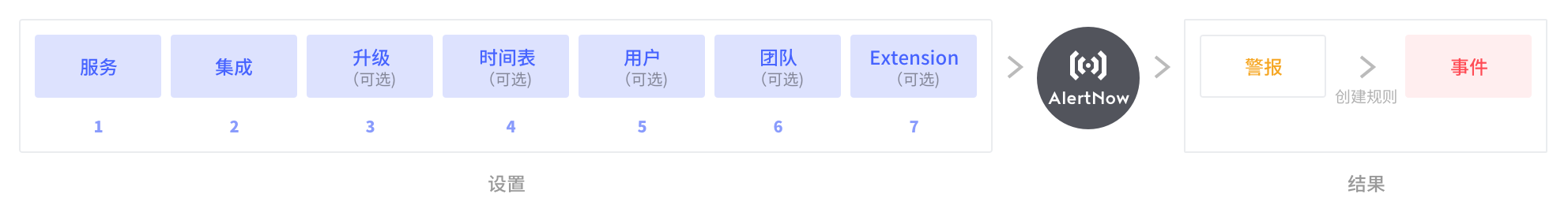 - 如果您是管理员,请按照以下步骤进行:创建服务 → 创建集成 → 创建时间表(选填) → 创建升级策略 → 创建团队(选填) → 设置扩展(选填)。