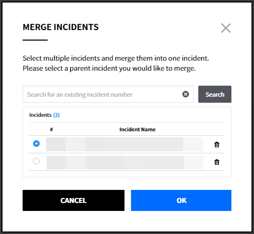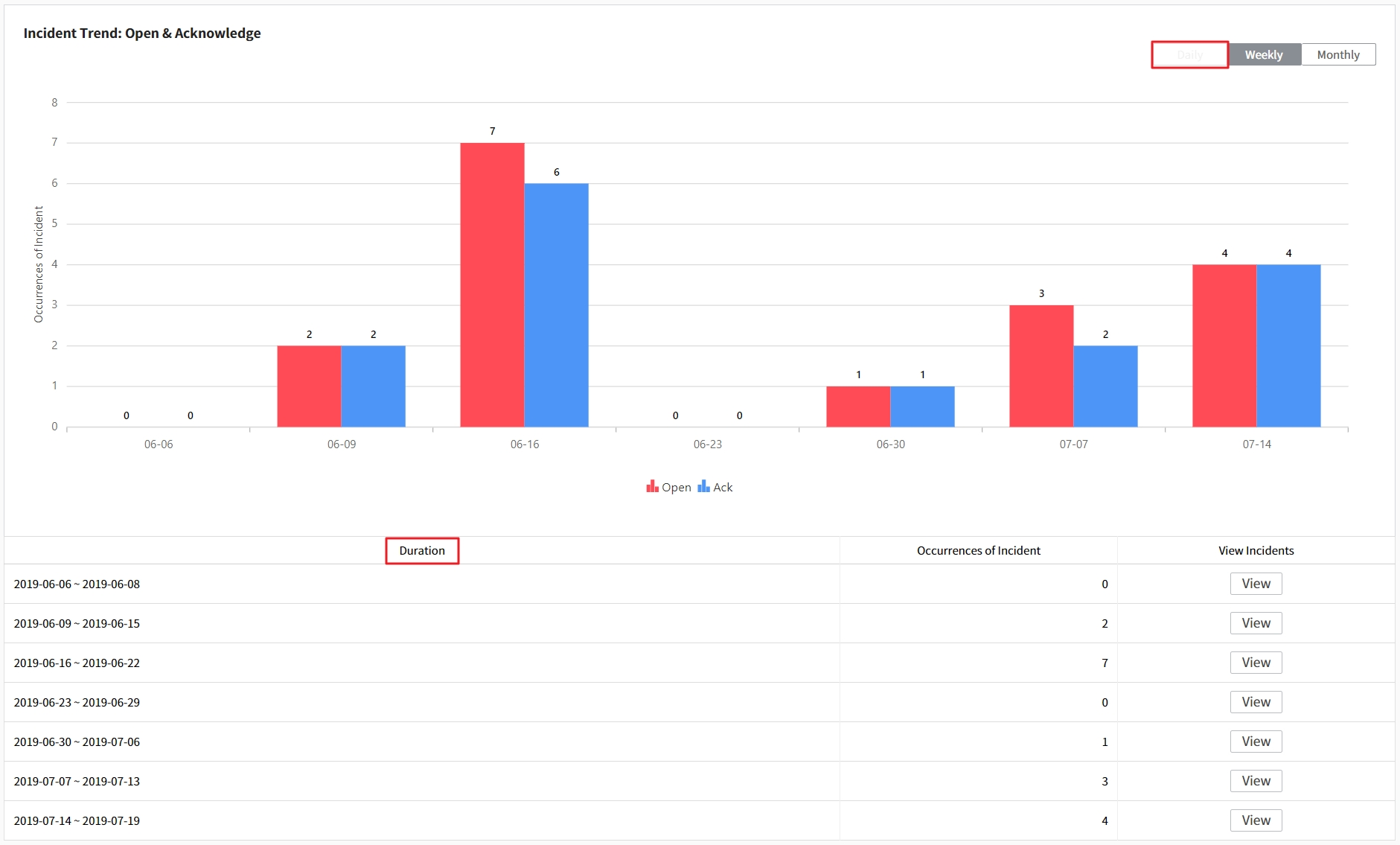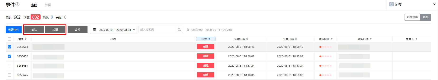 ⑤ 登录后用户可以查看事件。在所有选项卡中可以查看所有的事件,创建及确认选项卡中仅可查看相应状态的事件。您可将我的团队作为筛选条件查看事件,在我的团队页面中可以查看已将我的团队指定为负责人的事件。