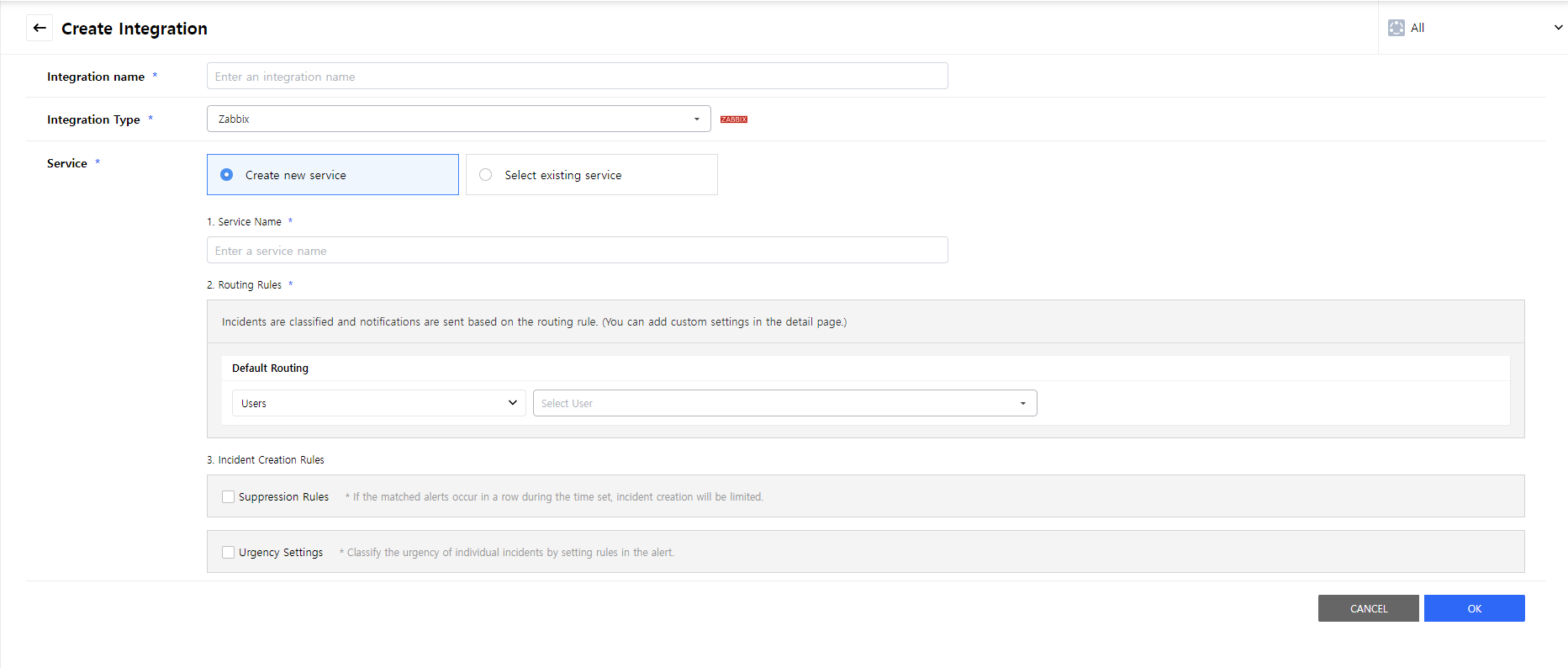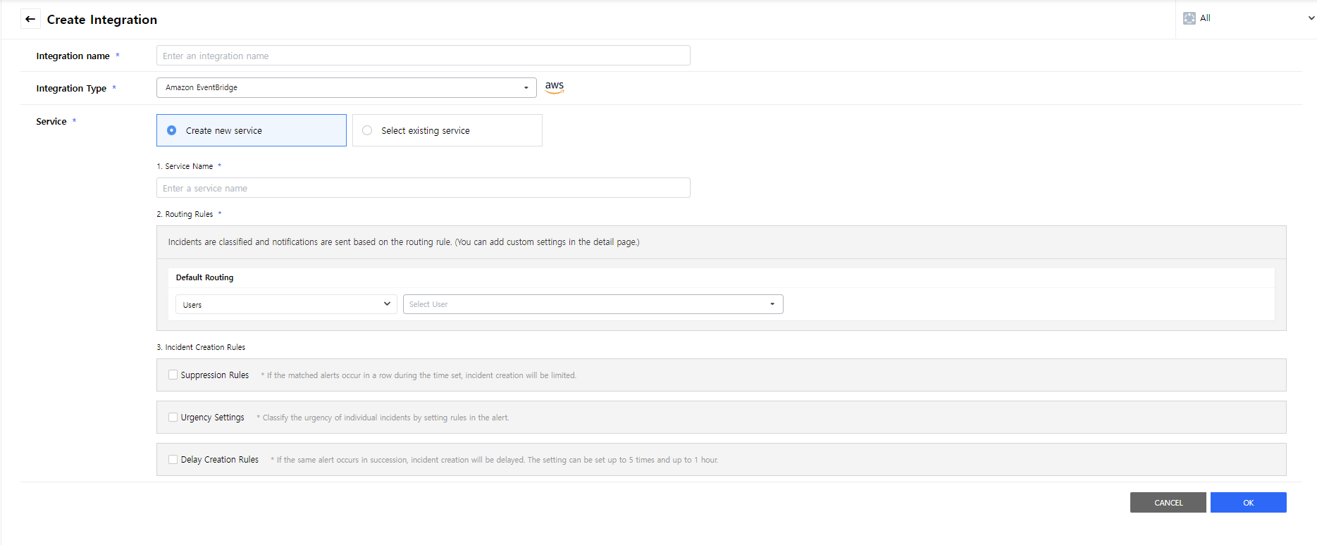 如果您是管理员,请按照以下步骤进行:创建服务 → 创建集成 → 创建时间表(选填) → 创建升级策略 → 创建团队(选填) → 设置扩展(选填)。完成设置后,通过关联到集成的信息会创建警报和事件,您可以收到创建事件和更改状态的通知并可以修改事件。