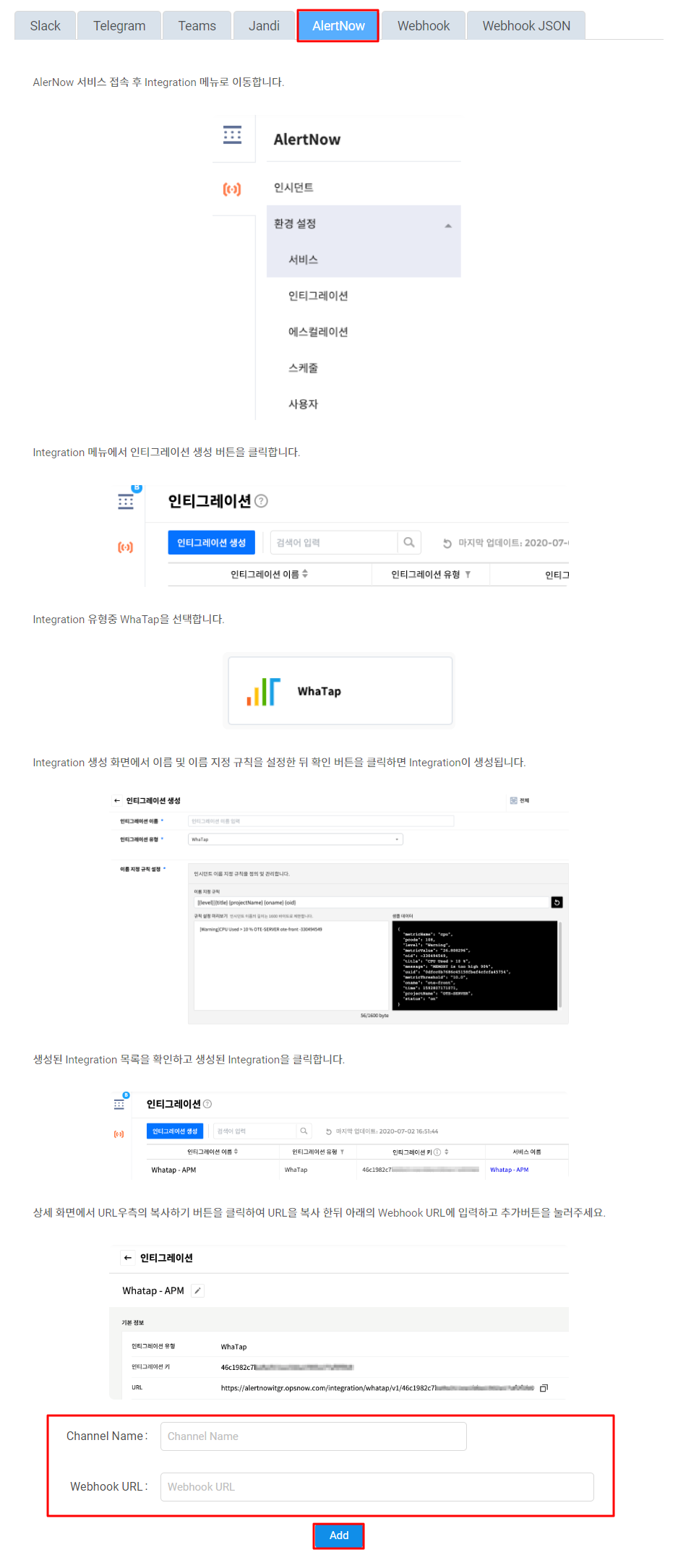 ※ If the token authentication is not performed properly, <Failed to validate authentication token. Please check the token and try again or restart authentication process later.> message will be displayed. Please enter alertnow in the newly created channel in Telegram and wait 1-2 minutes, and then enter the token again.