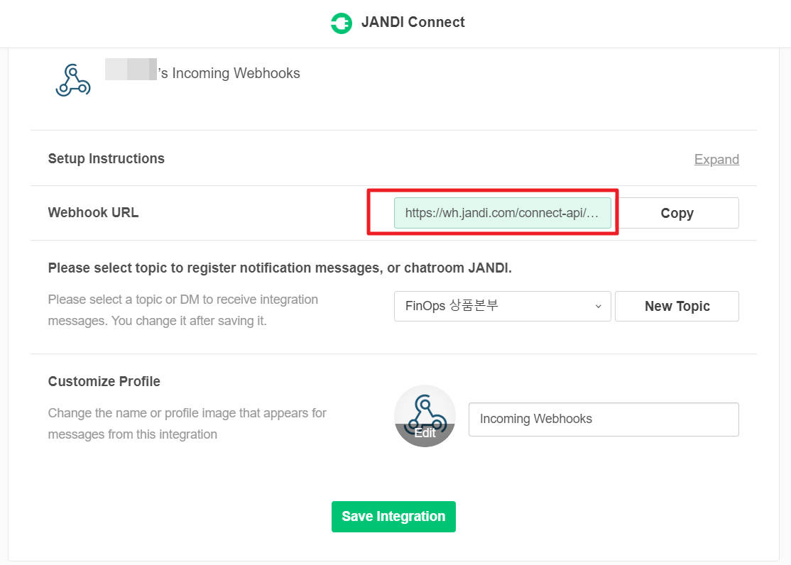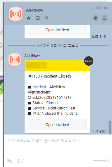 ⑤ Go to the newly created channel (Marco Polo Bot) and enter alertnow. Now go back to AlertNow -> Personal Settings, and enter the created bot token and click the [Save] button to receive notifications.