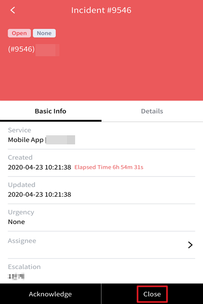 可以通过将事件状态设置为确认或关闭来结束升级。