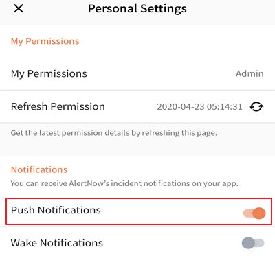 在个人设置的通知中将推送通知的按钮设置为On,则可以通过手机端APP接收事件通知。