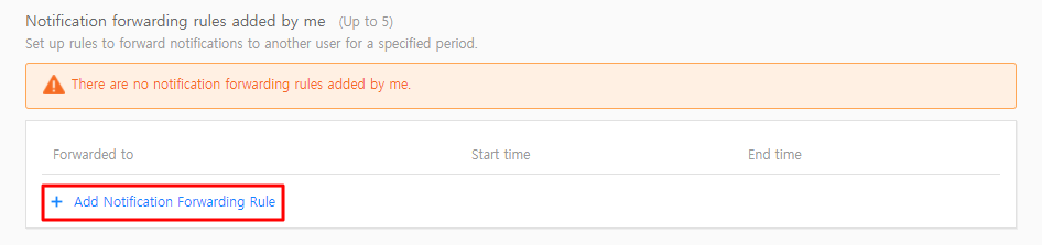 当用户无法收到通知时可以设置通知转发规则,使通知能够在指定的时间发送给其他用户。您最多可添加5个通知转发规则。