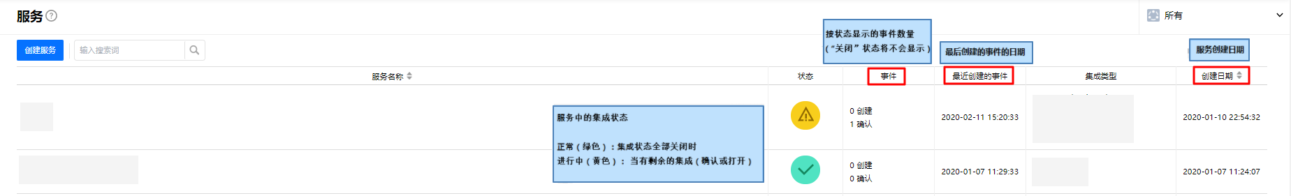 - 服务:作为管理集成中发生的事件的单位,可以是用户实际管理的服务或应用,可根据用户需要灵活使用。