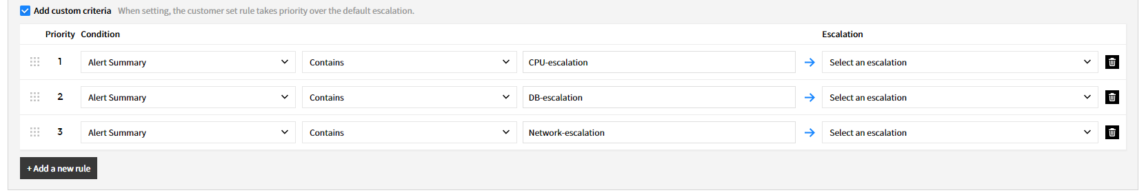 - 升级:设置发生事件时各阶段的负责人、要进行的操作及限制时间。