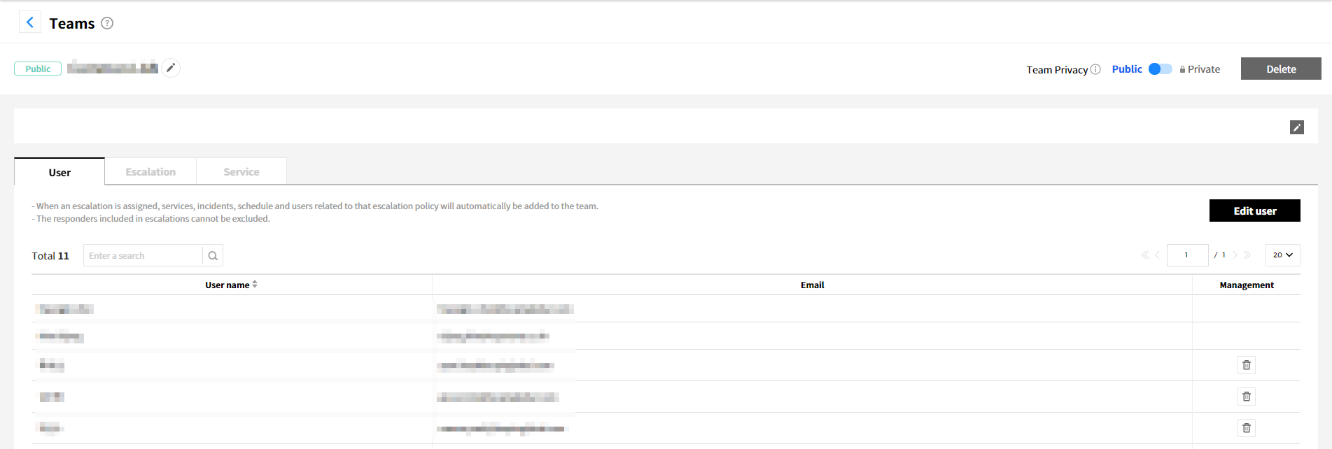 - 团队:以组为单位管理升级、用户、服务等与事件相关联的信息。