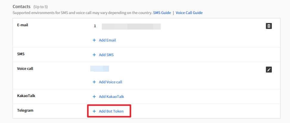 ① Click [Add Bot Token] to add the token for receiving notifications via Telegram.