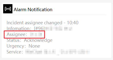 ⑥ 当事件负责人被更改时,您将会如下收到事件负责人已被更改的消息。更改后负责人信息将会同步到Assignee。
