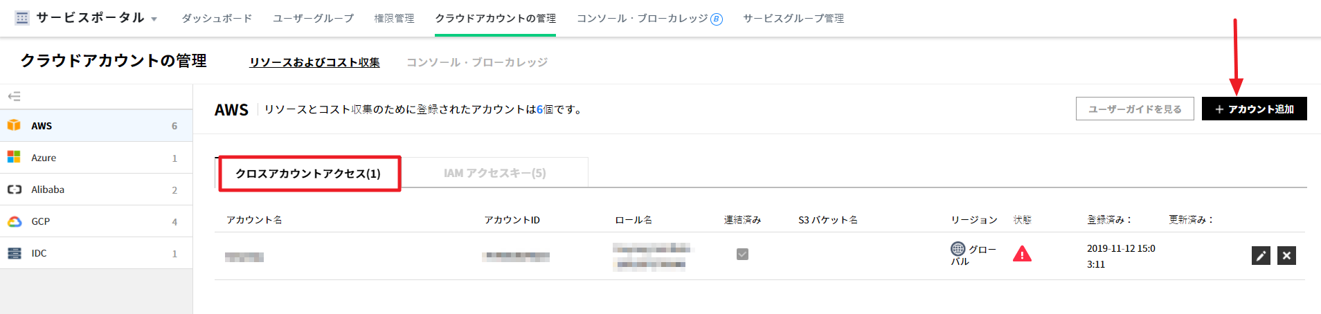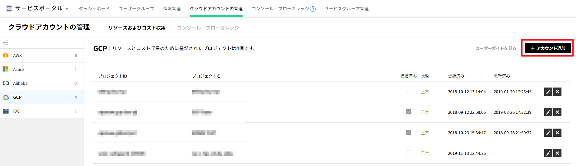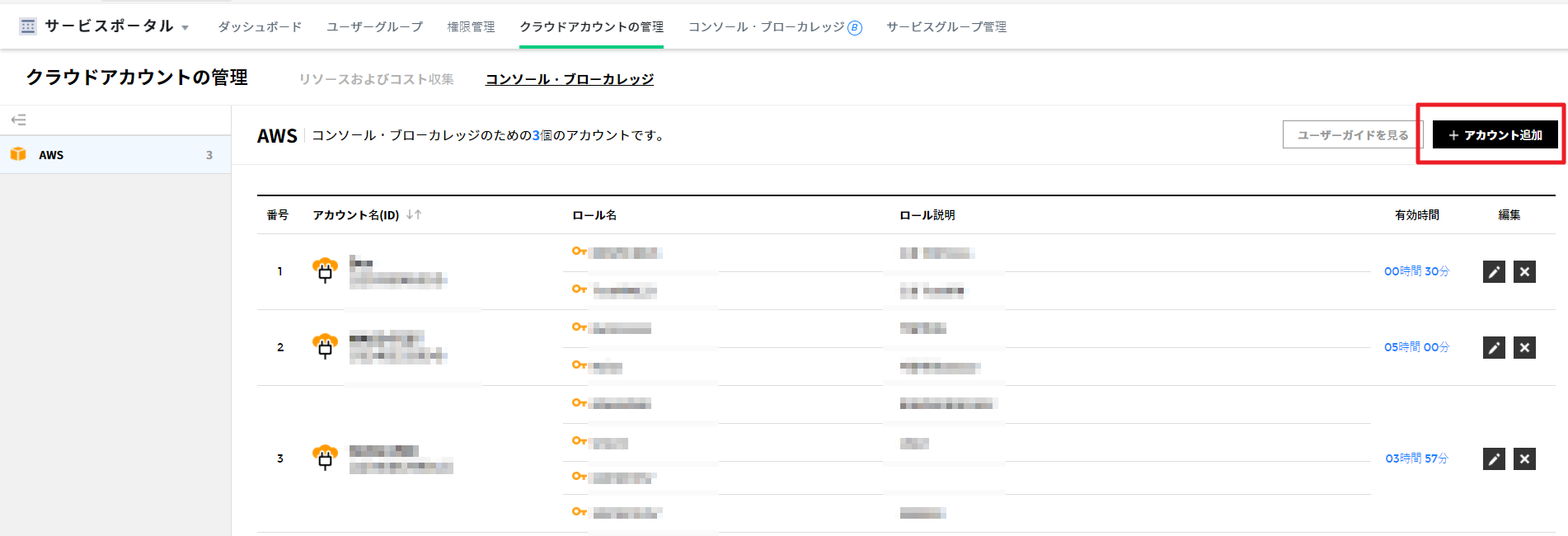 使用中のサービスのまとめ情報とメンバーの権限、クラウドアカウント、サービスグループ、コンソール・ブローカレッジなどを管理できます。