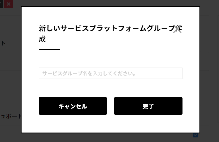 サービスグループ作成を選択すると、サービスグループ名を指定できる画面が表示されます。
