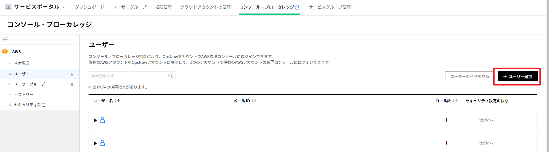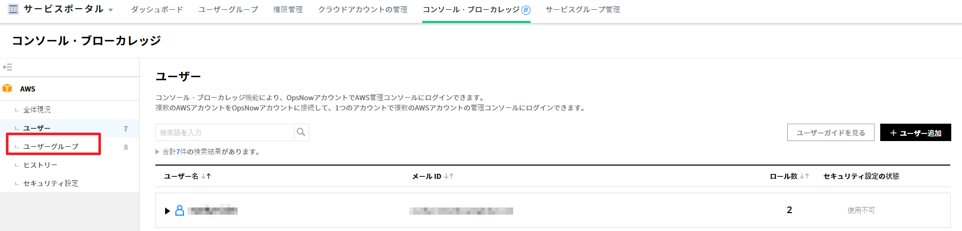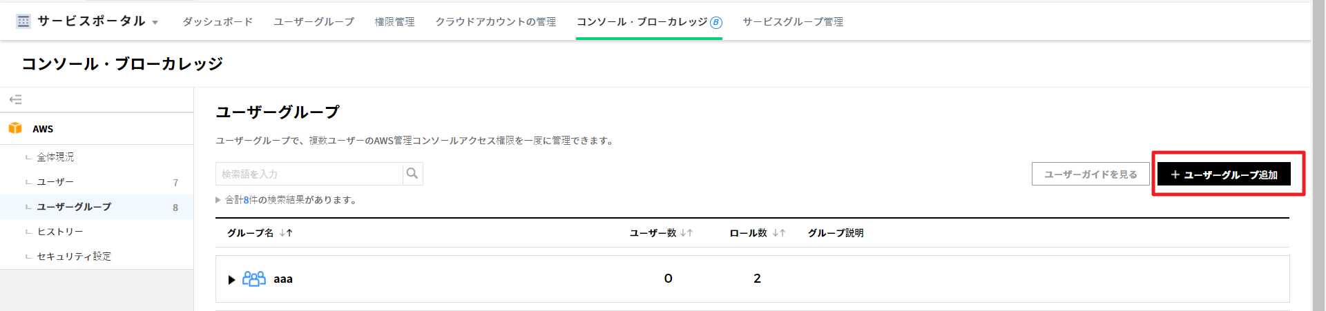 以下の画像を参考にしてユーザーグループ管理メニューの追加するボタンをクリックします。.