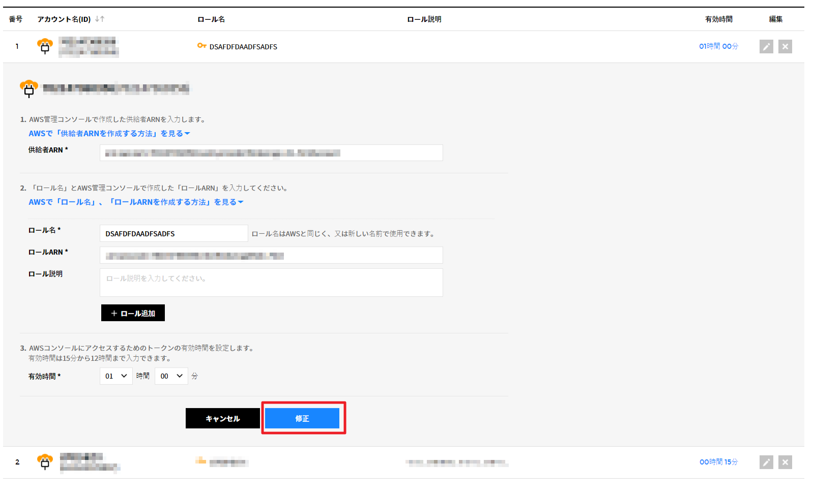 作成されたサービスグループを修正する場合、マウスを該当サービスグループに当てると編集、追加、削除アイコンが右側に表示されます。