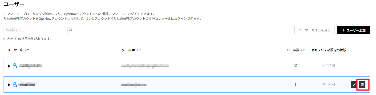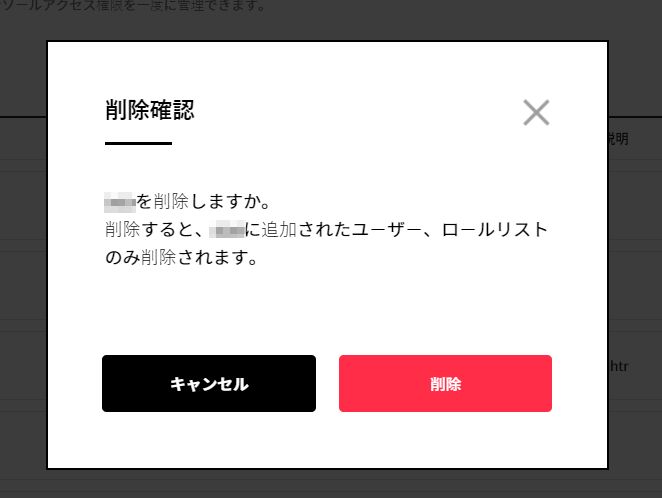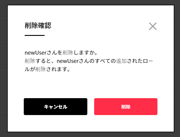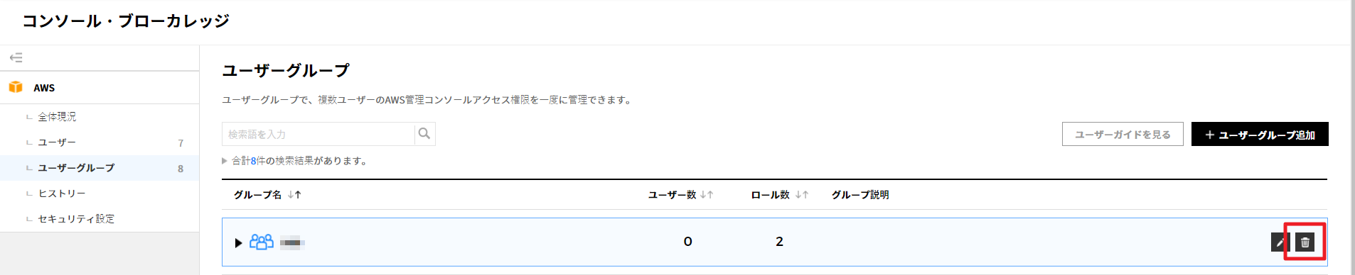 削除するユーザーグループを選択した後、ユーザーグループ名の右側にある[x]ボタンをクリックします。