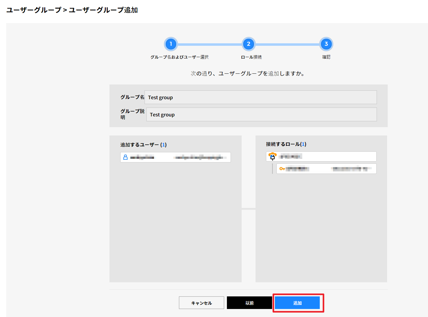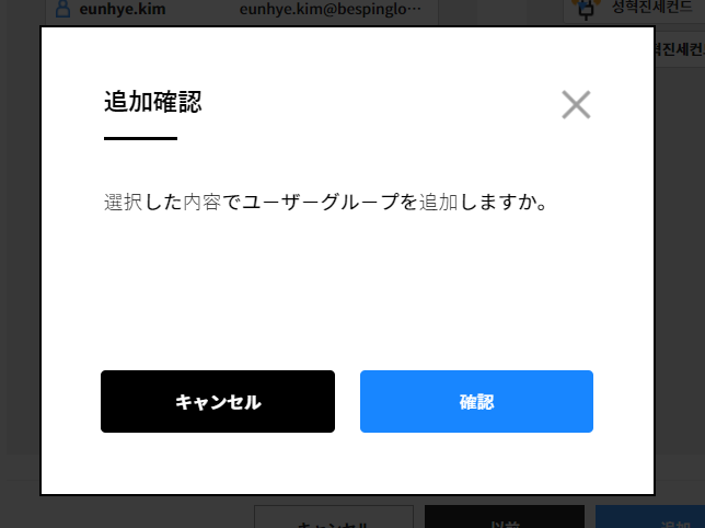 新しく作成するユーザーグループの名前を入力した後、[確認]ボタンをクリックします。