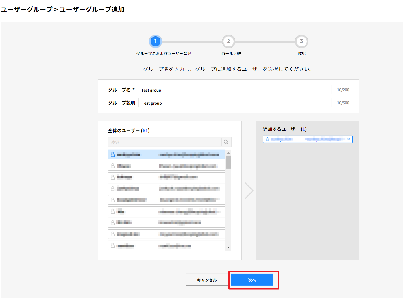 「新しいユーザーグループ作成」ポップアップが表示されます。