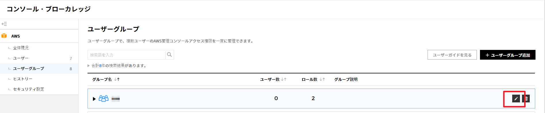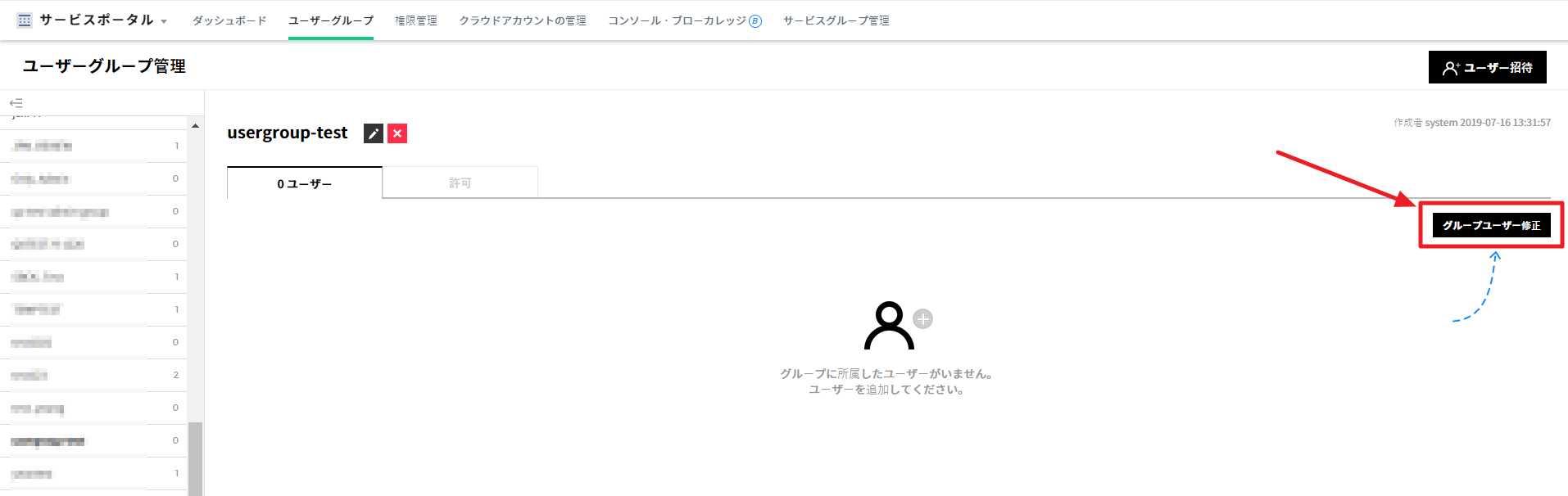 既存のユーザーグループのメンバーを修正したり、権限を変更できます。