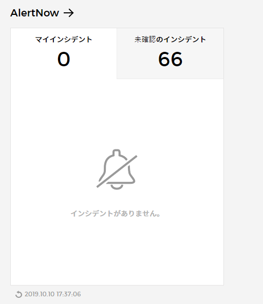 AlertNowカードビューの上段にある矢印をクリックすると、AlertNowのダッシュボード画面に移動します。 - マイインシデント/未確認のインシデント