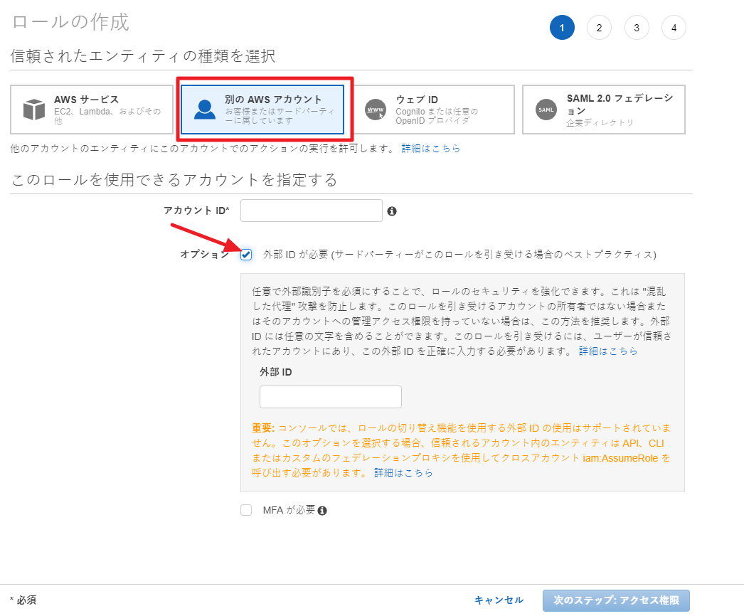 各項目別に条件を設定します。この場合、アカウントの条件は必須で選択します。