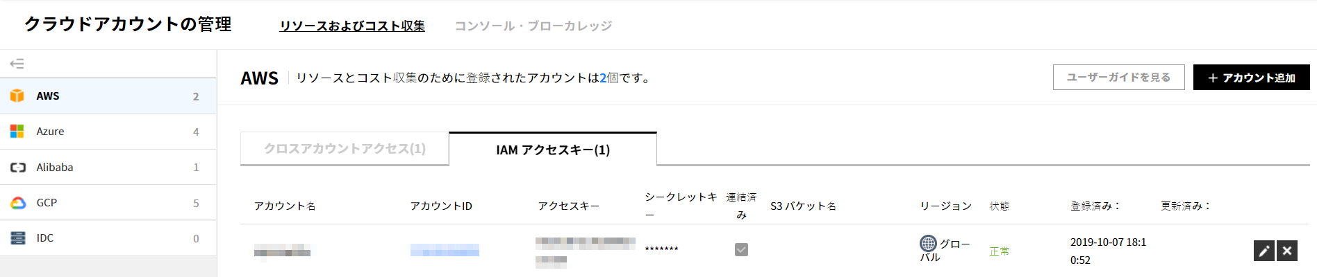 運用中のすべてのマルチクラウドで発生したコストが表示されます。