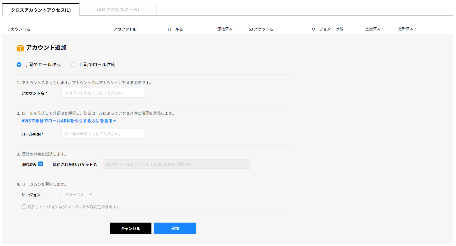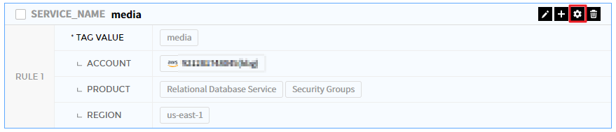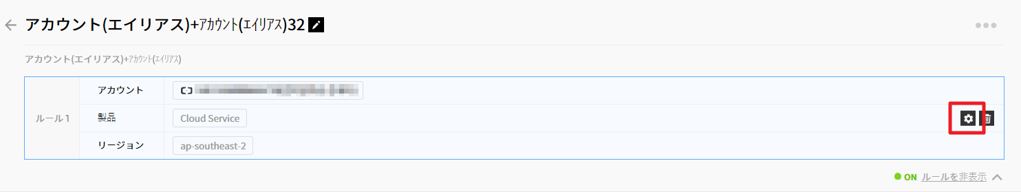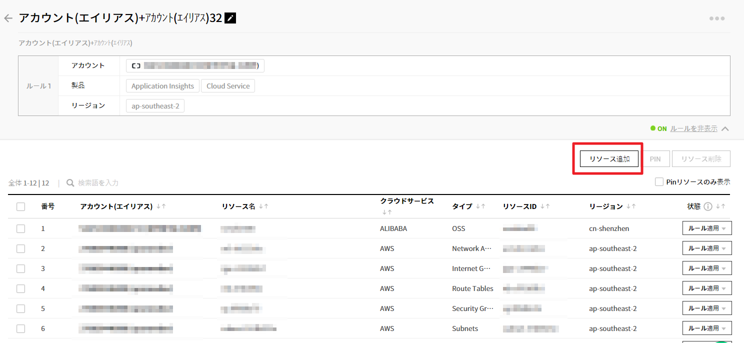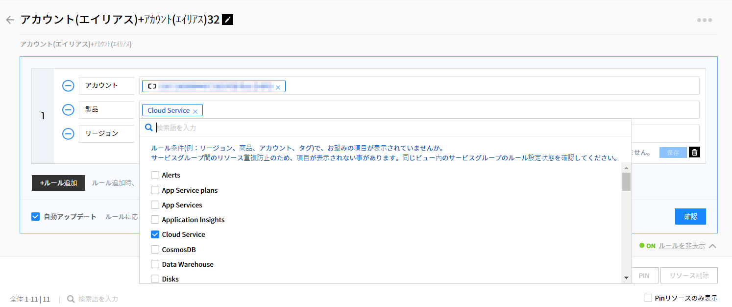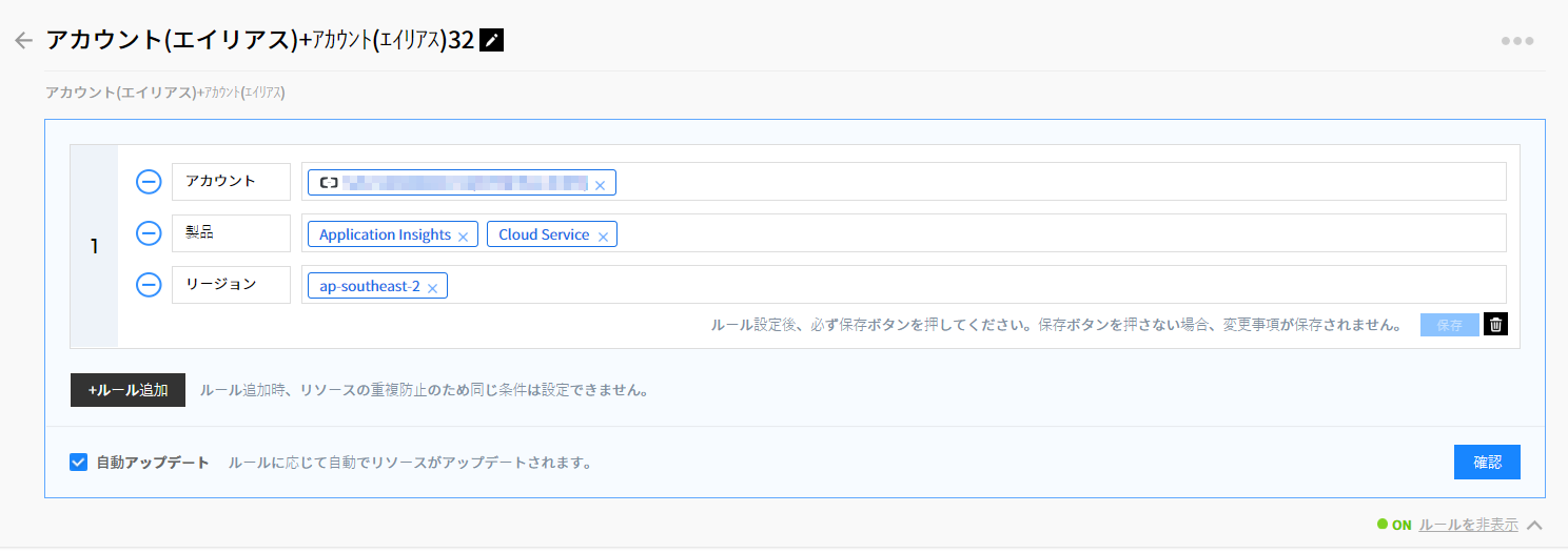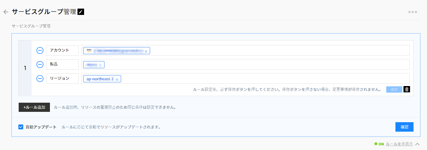 アカウントを基準に作成されたサービスグループのリソース自動追加条件設定