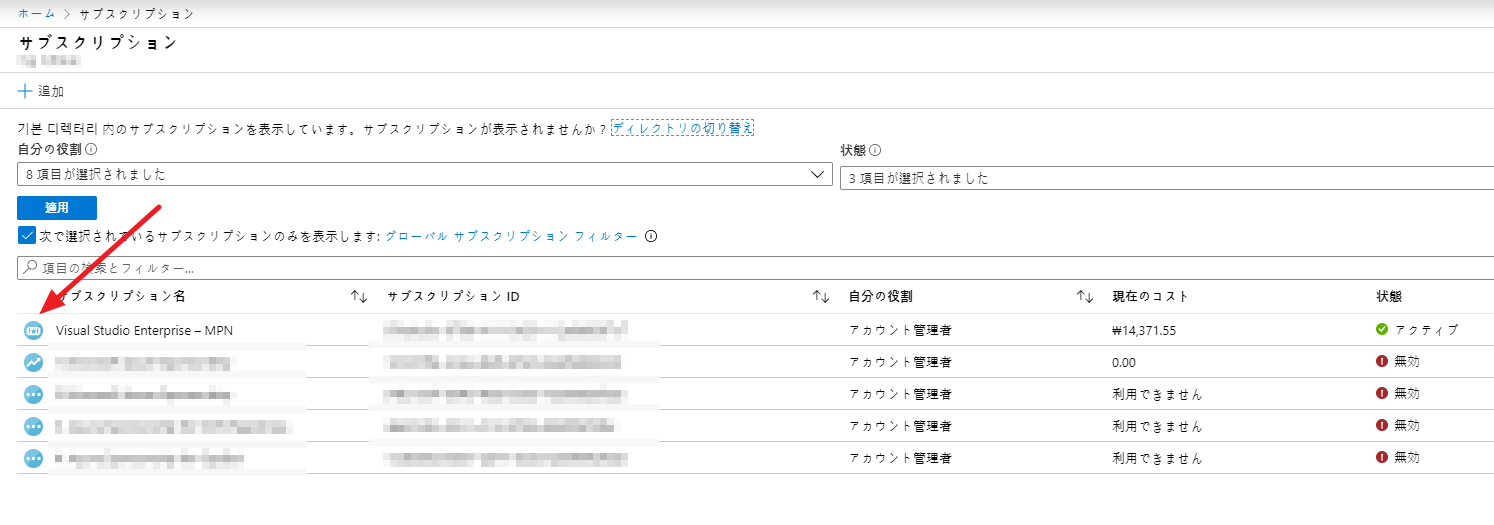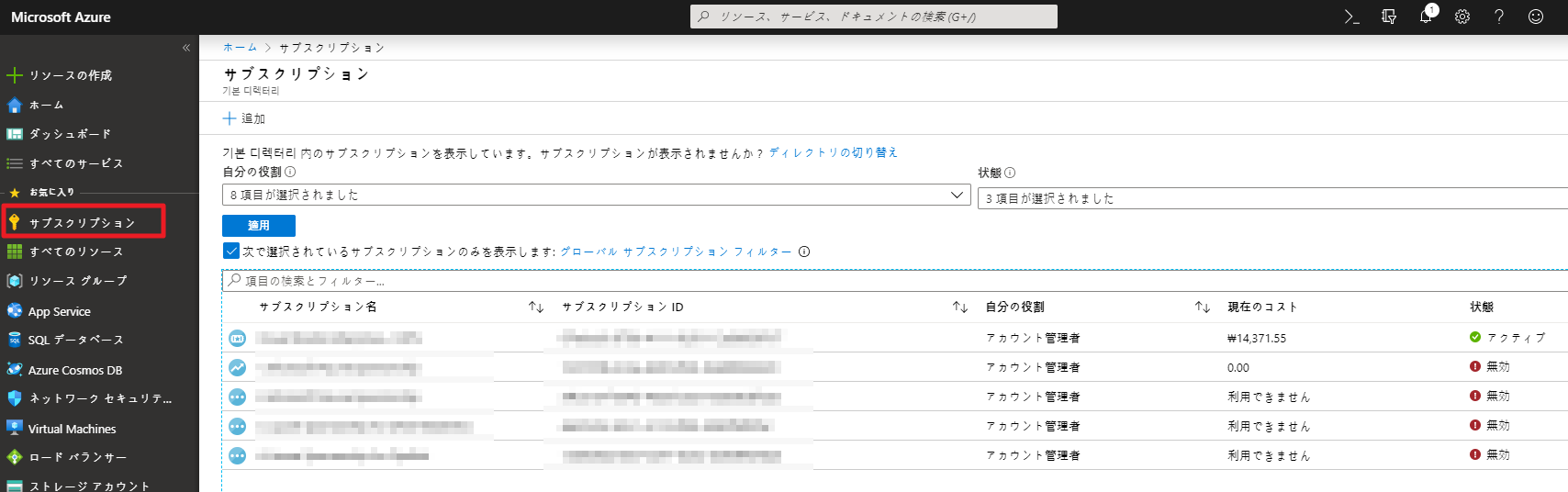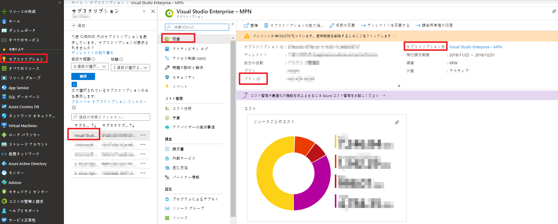 コストマネジメントのカードビューの上にある矢印をクリックすると、コストマネジメントサービスのダッシュボード画面に移動します。また、画面の左上にあるメニューでコストマネジメントの下位メニューを選択しても該当ページに移動できます。 - 全体
