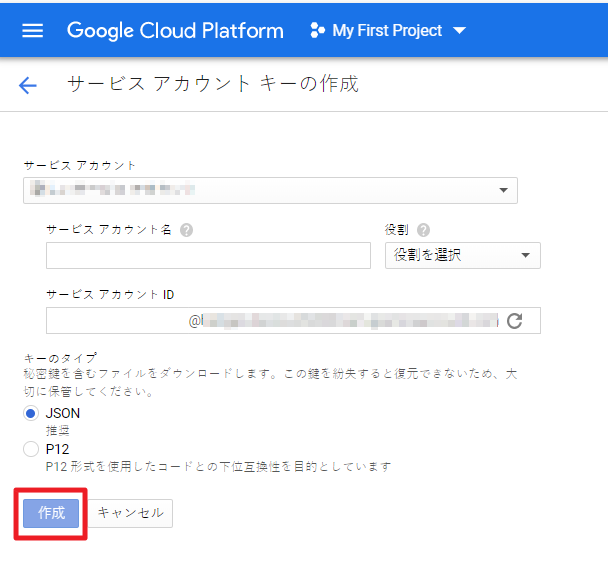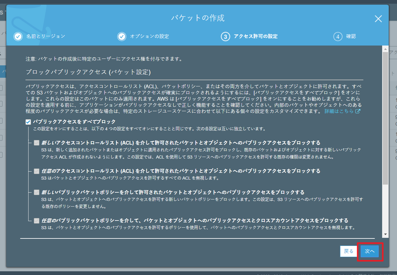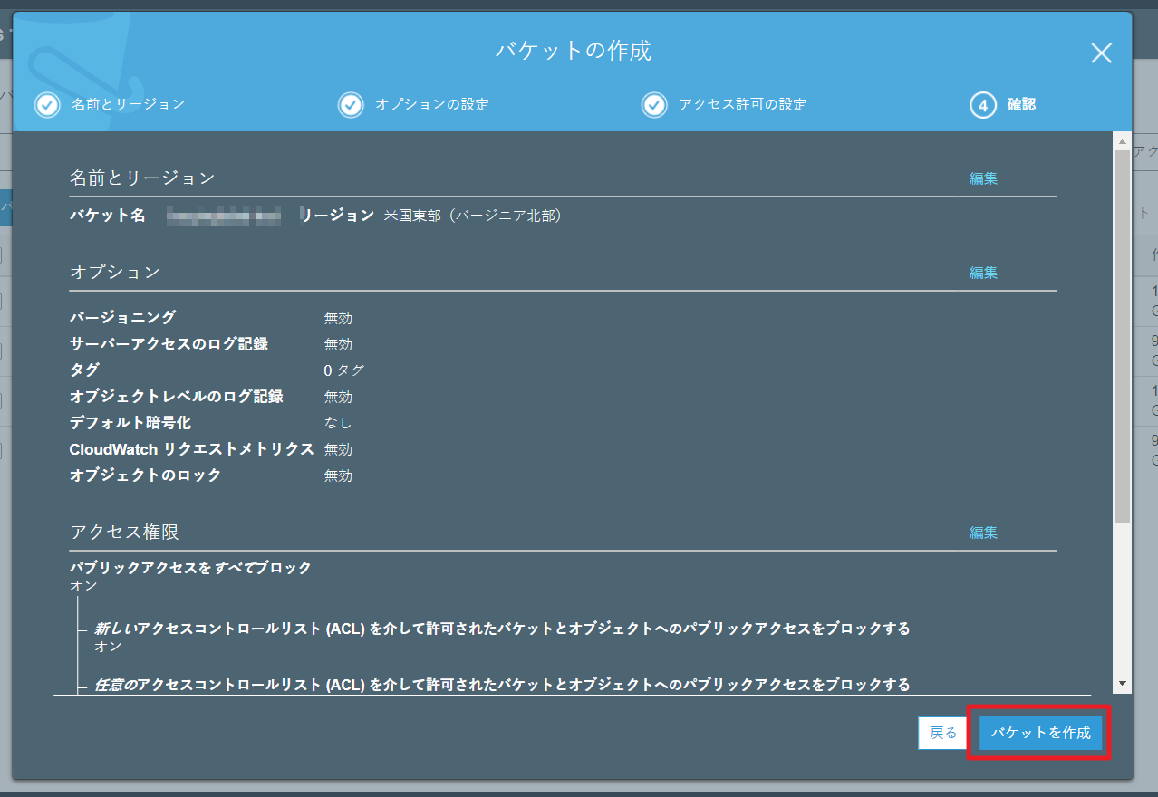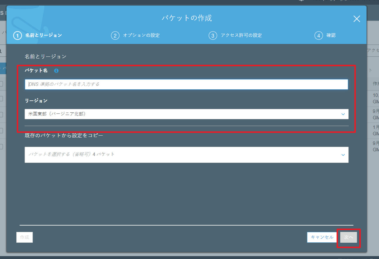 該当設定で作成する場合は作成を選択し、他の名前を使用して作成する場合は[以前]ボタンを選択します。