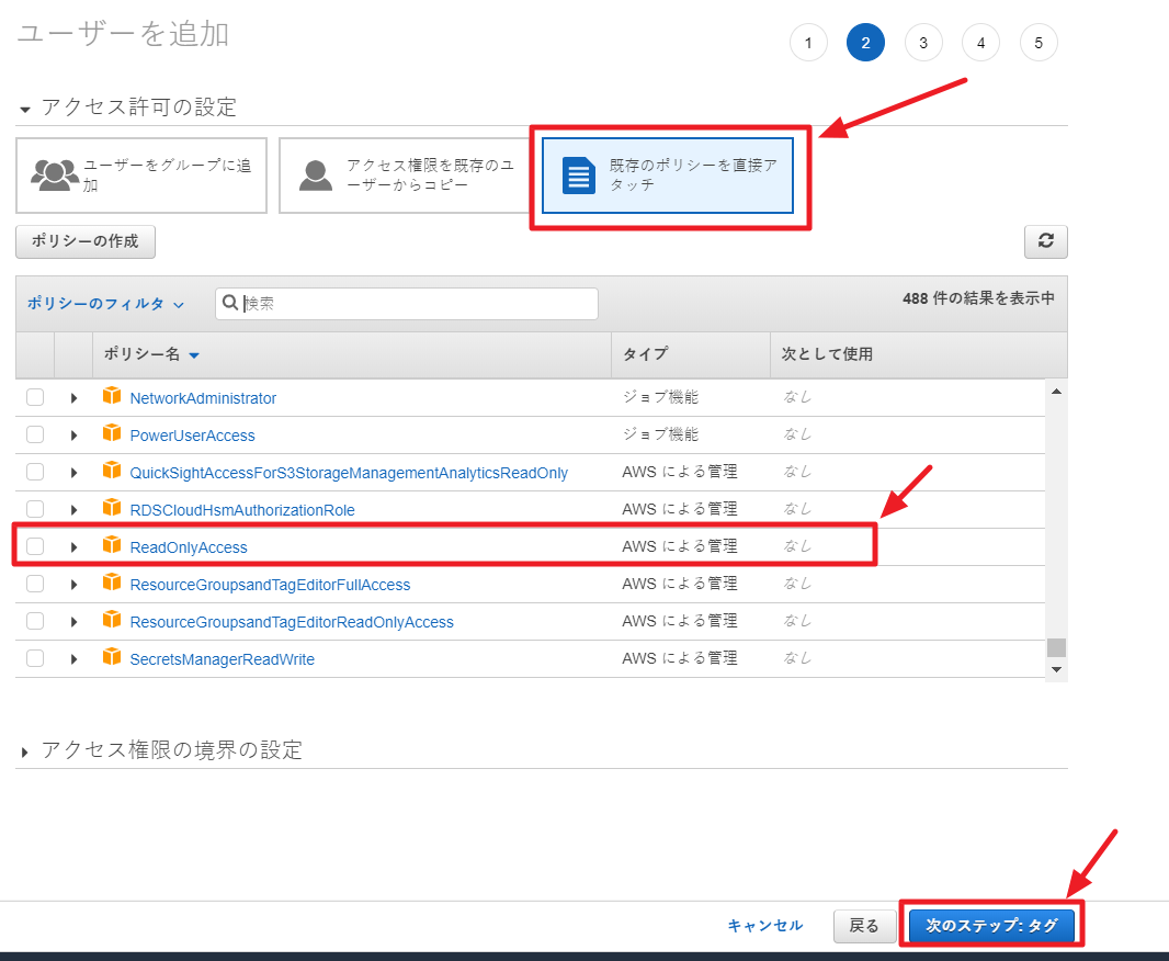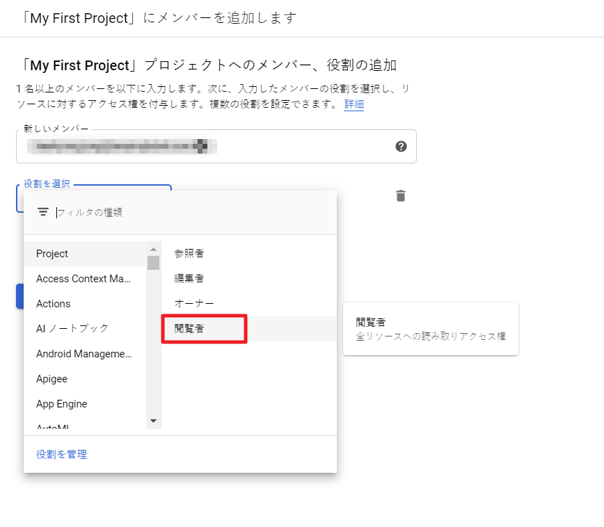 左側にあるユーザーグループリストで選択した権限が適用されていることを確認できます。