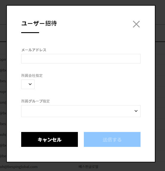 追加するユーザーのメールアドレス、所属会社、所属グループを指定してから[送信する]ボタンをクリックします。